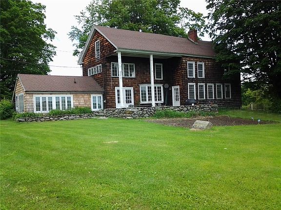 This country farmhouse circa 1940+-, has seven rooms with four bedrooms and two full baths. The home and barns on this 214.8+- acre farm are situated at the terminus with frontage on both sides of Howe Rd, and with additional long frontage on CT Route 63, Hilltop Road and Five Mile Road, these country roads border three sides of the farm. This is a working farm with a small beef cattle herd there is an older post and beam barn complex, there is a detached barn with a portion converted for an office.