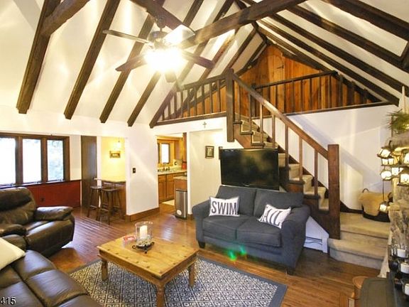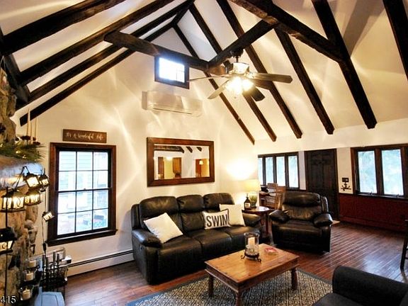 Lake Mohawk Charmer! Crane-style design-3 bedrooms and 1.5 baths, as well as Formal Living Room, Spacious Dining Room, Updated Kitchen w Granite and Stainless. Partially Finished Basement and Garage. This home boasts Two-story Living Room w beamed accents, traditional-style Fireplace w Woodburning Insert that heats much of the home comfortably. Spacious Dining Room w space for a gathering, Updated Kitchen w Stainless Appliances and Granite Countertops. There are Two bedrooms on the First Floor and a Lovely, Full Bath and a Spacious Master w recently-added Half Bath. The basement has a Family Room w Bar and Wine Fridge, as well as Laundry Utility Room and Walk Out Through the One-Car Garage. There's Hardwood Throughout and Split Wall Units provide cooling and heat. You'll Love The Oversized Property and Patio!