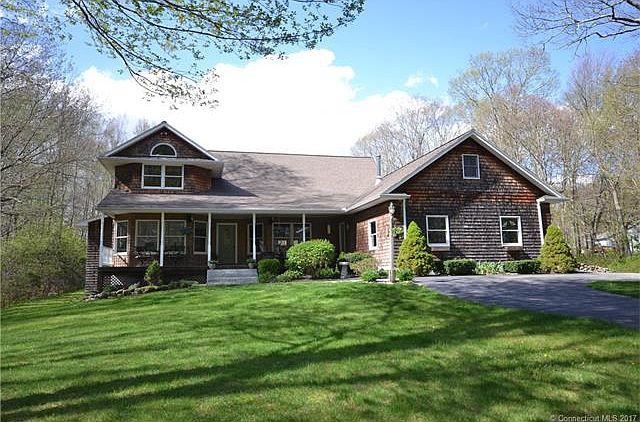 Dramatic Open Living space greets you as you enter this beautiful secluded contemporary cape surrounded on three sides by the Nehantic State Forest. Picture perfect curb appeal granite walkway and mahogany covered front porch welcome you to this quality builder's own home. Traditional exterior is deceiving as you enter this cedar shake cape style home to find huge open main level: Foyer open to Dining Room, open to granite Kitchen, open to Fire Placed Family Room all with soaring 21 foot high tongue in groove ceilings, huge skylight, hardwood floors - saying this home has an open floor plan is an understatement! First floor master with walk in closet, double shower head stall shower, tub and dual sinks. Bright Formal living room looks off to front porch and woods all around. Huge kitchen pantry, first floor laundry room, half bath and mudroom with sink with door to outside and garage. Center of the home is a lovely staircase leading to 2 upper level bedrooms and full bath. The lower level has a finished play room with large windows and another Full bath as well as unfinished utility and storage area.