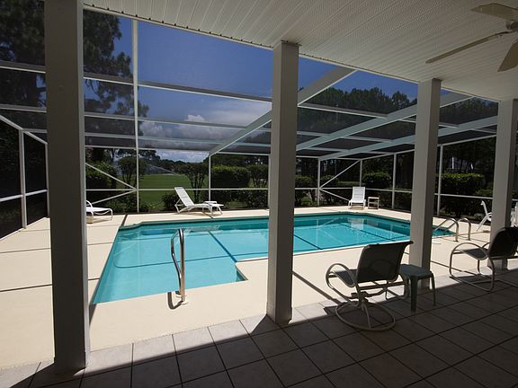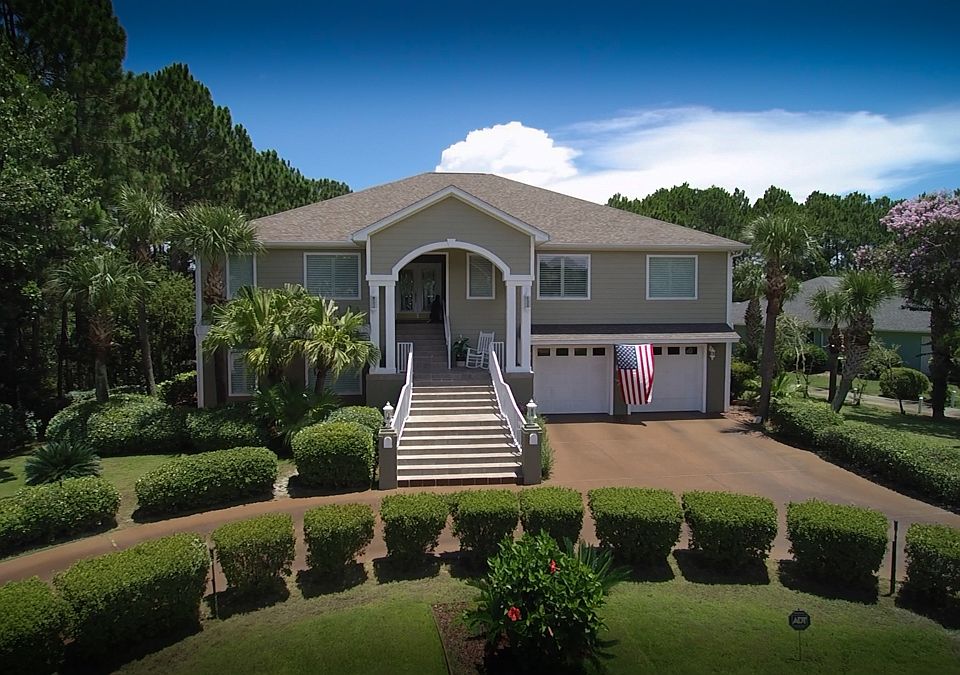 *****New Updates*** New Roof , Pool enclosure re-screened and Pool newly resurfaced. Directions: Go west on US 98 two miles past the Hathaway bridge to the Hombre golf course on left. Home is 1/4 mile in at 91 Hombre Circle, The premier home on the Hombre Golf Course. It has been fastidiously maintained since new. It is a well thought out custom built two story home. located just a half mile from the sugar white sands of the Gulf of Mexico and close to fine restaurants, shopping, and medical facilities. An appliance allowance should you wish to switch. The home is 2X6 construction clad with Hardy-Board and 3/4" and stucco exterior. The primary living area is the second floor. featuring a great room/ kitchen, master bedroom, master bath with garden tub two guest bedrooms, guest bath, office, cloak closet, pantry, laundry and four walk-in closets. The floors are 3/4' oak hardwood, tile and 70 oz carpet with 1/2" solid padding. The entertainment center and kitchen and office cabinetry are solid ash wood. All room have 52" ceiling fans including the porch and lanai. The Great Room opens out to a 60X10' columned covered porch that affords a beautiful view of the 12th green and fairway of the Hombre Golf Course. On the first level, you step from fully equipped guest suite to a covered lanai, a 15X30 screen enclosed pool and tiled lanai that offers a picturesque view of the green. This home is quality custom construction with numerous comfort and convenience features. There is plenty of storage with eleven closets in the home. It is perfect for a large family, or one that would like a guest suite or a family that wishes to care for elderly parents on the first floor which is fully equipped to function as separate quarters. An emergency generator system, electronic dust- allergy filter on air handler, water softening system, a water filter system, intercom system, central vacuum system, security system, lawn irrigation system with shallow well pump, ,surround sound system with speakers on the first and second floors as well as the u