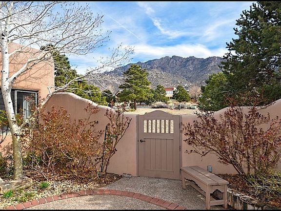 Wonderful light & bright Sandia Heights home. Excellent location and fantastic views. New wood tile plank floors. Well kept, nice open floor plan. Enjoy 2 living areas, 3 bedrooms, office, 2.5 baths. Master bedroom features walk-in closet, jetted tub and wood burning kiva fireplace. Features include raised ceilings, 2 fireplaces, great viewed, large two car garage and an office. Enjoy some great views from the outdoor patios and front courtyard. .65 acres, very close to tram. Will do a 6 month lease with month to month option.