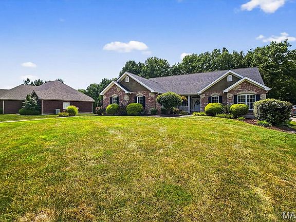 Welcome to this Beautiful Ranch home that sits on .96 of an acre — a 3-bedroom, 2-bath ranch offering 2,330 square feet. Nestled in a peaceful neighborhood surrounded by lush greenery, this home provides a tranquil retreat just minutes from Troy and Wentzville. The open, thoughtfully designed layout flows seamlessly, making it perfect for both everyday living and entertaining. At the heart of the home, a spacious kitchen connects to a cozy hearth and an inviting breakfast room. Elegant arched doorways and doors in the living areas, gleaming hardwood floors throughout, and Anderson double-hung windows add timeless style and quality. Recent updates include new carpet, fresh paint, a new furnace (2025), and numerous major improvements — new roof, siding, gutters, fascia, and heat pump — for comfort and peace of mind. An oversized, drywalled, and insulated 25x30 three-car garage offers abundant storage and workspace. Outdoors, a private, stocked lake rests just beyond your backyard, perfect for fishing, paddle boats, canoes or simply relaxing in nature’s beauty. With its serene setting, thoughtful upgrades, and generous square footage, this property is a truly exceptional place to call home.