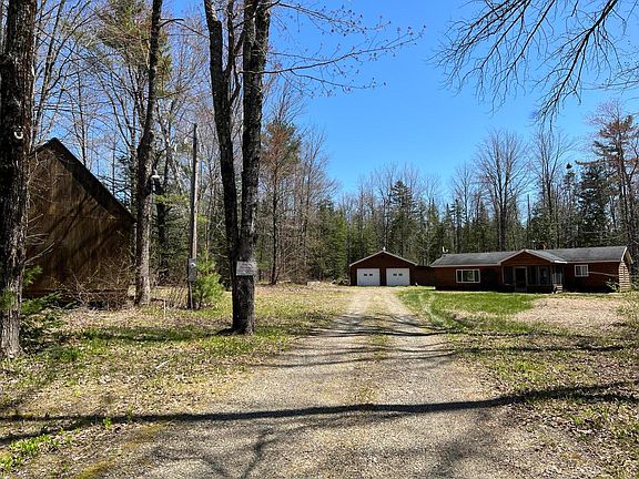 This one level ranch set back off the road on very private 5.58 acre land in the county and just minutes to Please Lake. The 2 cars detached insulated and heated garage with additional storage area in the back. 2 additional sheds for more storage space.