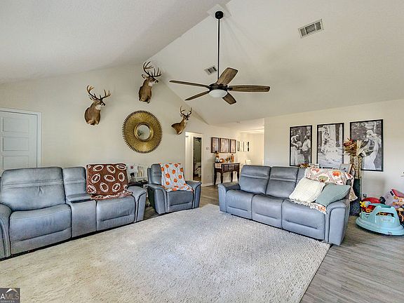 This 3-bedroom, 2-bathroom home is situated on 2.55 acres and features a private pond stocked with bass and bream. The property offers both indoor comfort and outdoor functionality. Inside, the home includes a vaulted ceiling in the living room, stainless steel kitchen appliances, a spacious primary suite with a large walk-in closet, and a generously sized laundry room. Outdoor amenities include a covered back porch designed for gatherings or quiet relaxation. In addition, the property is equipped with two shops-one measuring approximately 26x15 and the other approximately 38x26-providing versatile space for storage, hobbies, or projects. This home is move in ready and offers a balance of open living areas and private outdoor space.