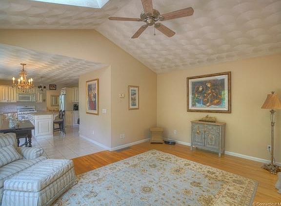 Pristine 3 bedroom, 2.5 bath home with hardwood floors, cathedral ceilings in great-room, breakfast nook, large kitchen with island, formal dining, formal living, totally finished walkout basement with office; master bedroom suite includes whirlpool tub with water heater; A terrific house with a playground right next door and convenient to downtown Mystic and major highways!