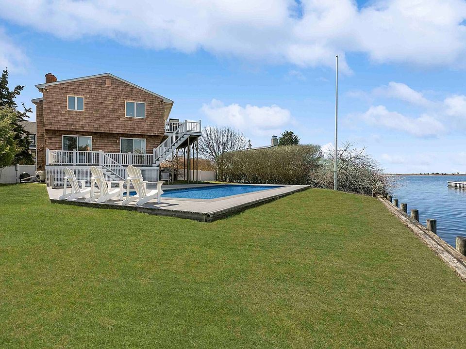 Endless water views in Southampton. This completely renovated home has it all. The first floor offers two bedrooms with a shared hall bath & a separate guest bed with en-suite bath. Upstairs you'll find the main living space that optimizes the expansive water views. Large open kitchen, dining area, living room with fireplace, & primary bedroom with bath. Outdoor amenities include expansive decking, inground pool, and fully bulk headed waterfront & dock. Close proximity to ocean beaches and village living.