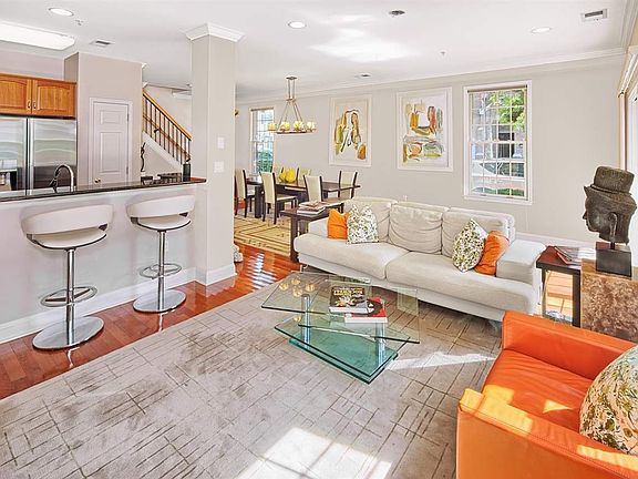 Incredible Bull's Ferry end unit Bergen!! Upgrades galore!! New rich cherry floors!! Gourmet kitchen with solid granite counters and back splash, cherry cabinets and GE Profile stainless steel appliances. Fireplace with marble surround. Designer interior accents; crown moldings, custom painted, custom light fixtures. Wrought iron railings. California closets.Sundrenched all day long. All this with private patio and river view entrance!! Parking for two cars; one in private garage and one in driveway. Community includes two pools with Jacuzzis, child play ground, waterfront promenade and free shuttle to NY Waterway Ferry and Light Rail. Steps to 158 bus to NYC. Close to shopping and restaurants. Do not miss this opportunity