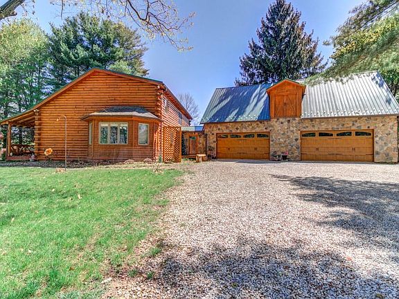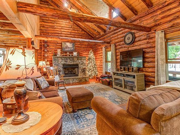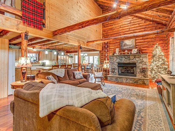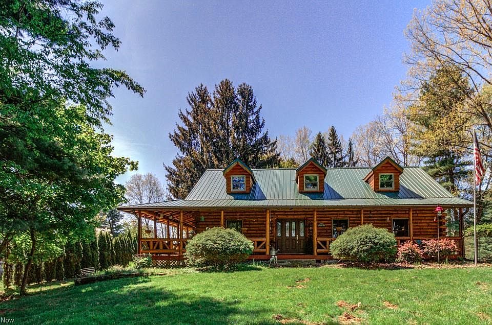 Absolutely fantastic, custom built red pine, hand peeled,log home on over an acre of land at Lake Mohawk! Oversized 4 car garage built in 2011 with an upstairs, perfect for a workshop or game room! Tongue in groove cherry floors, stone fireplace, 1st floor Master suite, solid maple kitchen with island eating bar, 2-story Great Room, huge loft, exposed beams, finished lower level with a second kitchen, bedroom, full bath and family room. Newer Geothermal furnace, steel roof, logs were restained in 2017. Large covered, wrap around porch, seasonal lake view.
