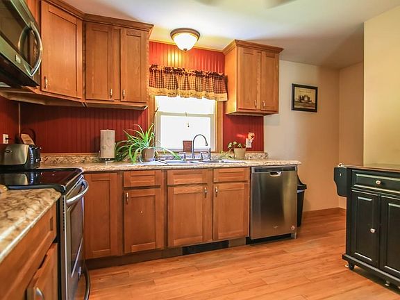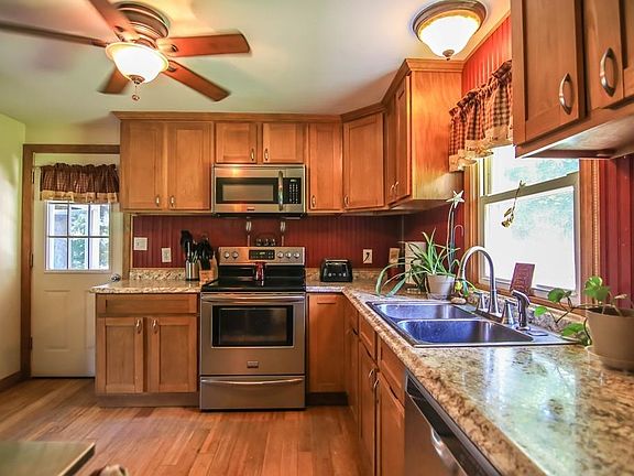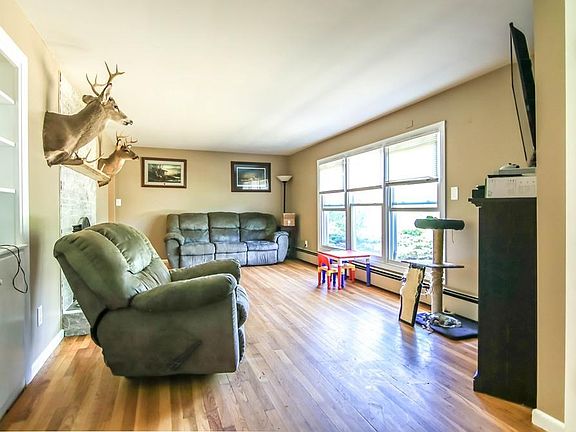 Move right into this 3 bedroom 1 bath ranch home. 2nd owners. Kitchen and bathroom recently remodeled, newer roof. Refinished hardwood floors, newer windows, Large living room with wood burning fireplace, scenic views out the huge picture window. Partially finished basement, walk-out, 1 car garage under. Relax or dine in your screened in patio off the kitchen. Enjoy the large flat yard out back. Subject to sellers finding and closing on a new home, actively searching.