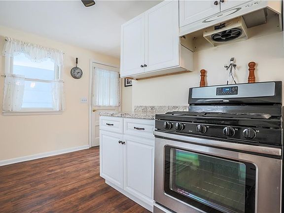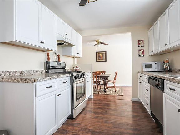 WOW! Own for less than $1200 a month! ALL MECHANICS, KITCHEN AND BATH ARE UPDATED! a ranch home - with space! this home has an new white kitchen with gas stove and dishwasher! The full bath has been remodeled as well with new vanity and tile floor! A living room full of light from the large window and foyer has hardwood floors. The family room has a slider that leads to a FULLY FENCED yard! All three bedrooms are good sized! Basement is huge and super clean! Washer/dryer stay! TEAR OFF ROOF and FURNACE are 6 years old - water heater is a WEEK OLD! Home has central air as well as a breezeway to connect house to garage! Garage has electric and storage!