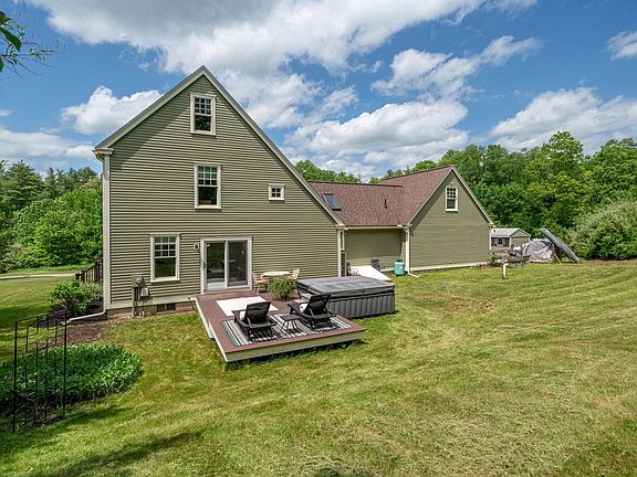 This lovely Saltbox style home may have a traditional flair yet lives the way every modern family dreams of!. It has an expansive kitchen with room for all your guests to hang out while you prepare a great meal/entertain. Then you move into the right sized fireplaced family room for a night of movies and games or just winding down and relaxing. The bonus first floor space is perfect for those still wanting a formal dining room or if a large office is what is needed, then make it your own. Of course, it overlooks a great deck and hot tub so perhaps those zoom meetings can wait.....The 5 acres is mostly located in the front of the house which means it sits back off the road so privacy and peaceful evenings are a given and the sunlight is amazing for someone with a green thumb. Yet you have a large expansive yard where any soccer/football game can be had. The primary bedroom is just lovely with 2 large walk in closets and an updated bath with soaking tub. The other 3 bedrooms each boast their own unique flair - not a cookie cutter house for sure! Conveniently located 3 minutes from the elementary school and Routes 155/125/4