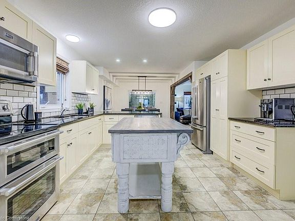 Stunning 2-Storey Home in Elmira! This one-of-a-kind home effortlessly combines modern elegance with rustic charm. Perfect for a growing family, this spacious property is designed with both functionality and style in mind. The open-concept kitchen boasts striking black granite countertops, complemented by a custom-designed accent island, and modern subway tile backsplash. A unique island return adds extra prep space, making this kitchen as functional as it is beautiful. Step through the dinette area to a spectacular timber-frame covered patio, complete with a hot tub and pergola – perfect for relaxing and entertaining. The cozy living room, with its inviting gas fireplace, offers a perfect space to unwind. The seamless flow between the dinette and living room creates a warm and welcoming atmosphere throughout the main floor. Upstairs, you’ll find a spacious family room or bedroom, ideal for a variety of uses. The second floor also includes a 4-piece bathroom and 3 generously-sized bedrooms, including a luxurious master suite with a walk-in closet, ceiling fan, and a private 4-piece en-suite. The en-suite features double sinks, a walk-in tiled shower with glass doors, and rustic wood beams that add a touch of character to the space. The gorgeous antique chandelier in the stairway and rustic wood beams on the ceiling are just a few of the stunning details that elevate this home’s design. The completely finished basement offers additional living space, including a large rec room with a dry bar – perfect for entertaining guests. A spacious bedroom, 3-piece bathroom, and extra room for storage or an office make the basement as versatile as it is functional. The front landscaping and walkway were finished in 2022. This modern-meets-rustic beauty is a must-see!