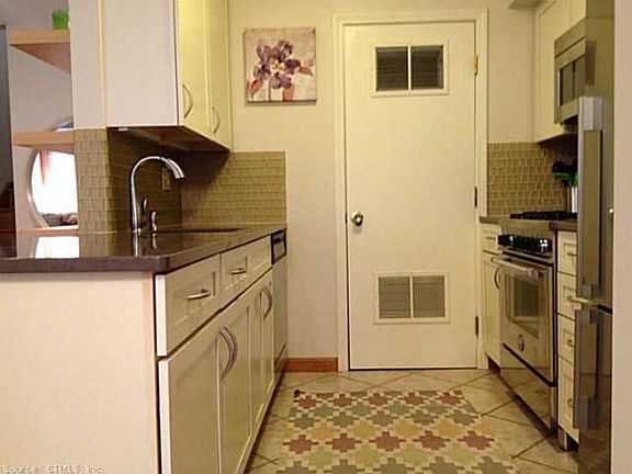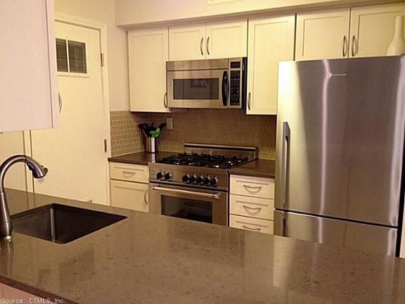 A peaceful and ideal location near major access routes, and a short drive to Milford town center, rail and coastline. This unit also includes a detached garage. The split level apartment was recently fully renovated with high quality materials, hardwood floors, and stainless steel appliances (Bertazzoni gas range and Fisher and Paykel refrigerator). Large, high ceiling living room with balcony overlooking a wooded area. The modern kitchen is open to the living room and dining area. One large bedroom upstairs and a spacious well lit loft, with plenty of storage space. A modern washer/dryer is included. Gorgeous renovated bathroom. Sorry - no pets.