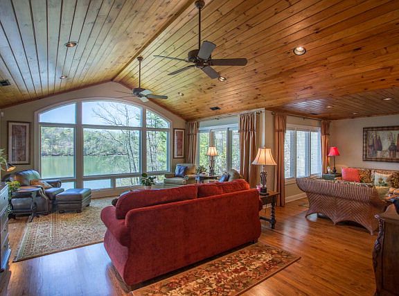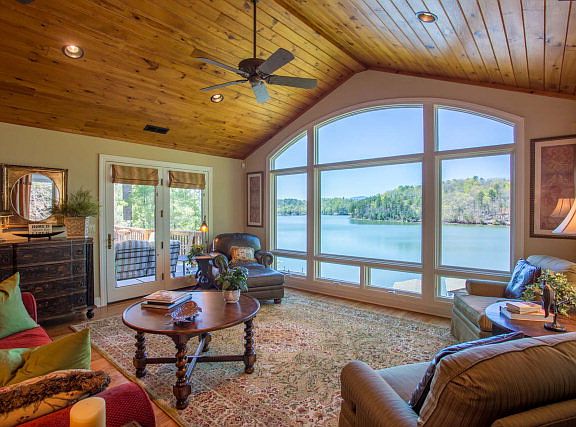 All the charm of an original Lake James home with modern updates. Original part of home has beamed ceiling and large stone fireplace. Modern updates include a large master suite, updated baths throughout, open kitchen and dining with granite countertops and a ton of custom cabinets! View from the kitchen will make doing dishes a joy. Also added is a large sitting room with huge windows to capture the serene views of the mountains, Big Island and Lake James. Basement area has spacious family room with full bath and wet bar area. Large laundry and freshly painted storage area. Enjoy out door living on covered deck, patio, on the covered gazebo or from one of two covered boat slips! Extensive landscaping in front and rear of house with beautiful trees, shrubs and rock pathway and rock fire pit. Private location with beautiful views. Quaint older neighborhood with low voluntary HOA dues and few restrictions.