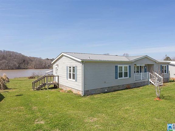 LOGAN MARTIN LAKE UNDER $200K!!! Beautiful manufactured home on the lake with 3 bedrooms/2 bathrooms, large living room with a woodburning fireplace, eat-in kitchen, large laundry room, garden tub in master bath, walk-in closets. Nice flat lot with boat launch, covered gazebo perfect for grilling steaks during those warm summer months, storage building to remain and deck. Home has newer energy efficient windows with a lifetime transferable warranty. Sellers are offering a one year home warranty from Old Republic.