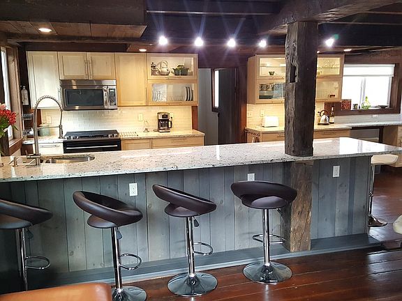 Located in Canaan, NY, less than a mile from the Massachusetts border, this wonderful 1700s post and beam farmhouse has recently undergone total restoration. Knoll Rock offers a wonderful combination of historic features combined with state-of-the-art comforts and amenities. Set on four tranquil acres, and close to Tanglewood and all the cultural and leisure activities the Berkshires and Hudson Valley region has to offer, this is the perfect place for a relaxing getaway or memorable vacation. All guests must provide positive reviews from previous VRBO bookings. Please make sure you meet this requirement prior to sending a booking request. The entire house consists of a large open living, eating and gourmet kitchen area, plus a separate fully equipped studio kitchen, a large family room and four bedrooms (one king bed, two queen beds and one full bed). The four beautiful bathrooms are all fully tiled, with glass vanities and euro-style full-body power showers. One bathroom also offers a whirlpool tub. The beautiful trails on this property, and the owners' adjoining land, offer country strolls and cross-country skiing and snowshoeing during winter season. With beach passes for idyllic Queechy Lake, swimming and kayaking are only five minutes away. Bikers can enjoy cycling the dirt roads near the house or on the many trails in the region. Spend warm summer evenings dining on the porch or out on the patio. The property is configured so that two families can share the home, yet maintain individual privacy if required. Knoll Rock is not ideal for toddlers who are just walking. Well supervised/behaved children are welcome. Easy accessibility via nearby Route 22 and I90. New York City is approximately two and a half hours and Boston two hours. As well as renting as an entire property, the property can be rented as just the main house (3 bedrooms, 3 bathrooms), or studio wing (one large bedroom, living room, kitchenette and bathroom). Guests have full access to all accommodations, other than the basement and attic. Bikes, kayaks, paddleboards and snowshoes, according to the season, are available by arrangement with the hosts. We have passes for the lovely private beach at Queechy Lake, for summer swimming The house is stocked with many wonderful games, books and movies. There are three large screen Roku TVs offering streaming Netflix, HBO, Showtime and other popular entertainment and news channels. With a cell tower less than a mile away, phone and data service is normally very good. We maintain trails on both properties (12 acres total), offering country strolls and mountain biking, or XC skiing and snowshoeing in the winter. Our neighboring network of dirt roads also offers biking and hiking opportunities. Close to all the wonderful places of interest and cultural activities of the Berkshires and Hudson Valley. A short drive from Tanglewood, Shakespeare & Co, Kripalu, The Mount, Hancock Shaker Village, Jiminy Peak, Catamount, Bousquet, etc. 3 - 12 month lease term. Access to Queechy Lake