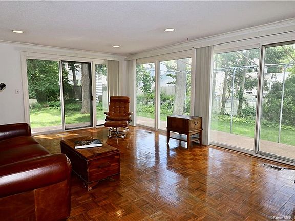 Enjoy one floor living in this ranch style home on a fabulous corner lot (no sidewalks to shovel in a desirable neighborhood. This spacious home offers 3 bedrooms, including a primary suite with a large attached bath. Hardwood flooring is in great condition. Freshly painted kitchen, living room and dining room, including the ceilings. There is an option to relocate the laundry to the main level. Fabulous 4 season sunroom is sure to be a favorite space to enjoy the outdoor views in temperature-controlled comfort. This home has central air to keep you cool and two fireplaces to cozy up to on those chilly evenings. Wallpaper has been removed in two bedrooms and partially removed in the primary suite. Some updating may be desired, but the home functions as it is. Easy access to highways. Nearby Rentschler Field hosts UCONN Football games and fun community events. Glastonbury is five minutes away with plenty of dining and retail options. Enjoy the many parks East Hartford offers, including the spectacular Wickham Park featuring 280 acres of gardens, open fields, ponds, picnic areas and more Now's your chance to make this your home.