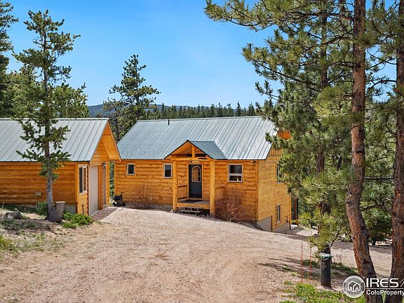 Privacy, Quality & Style all wrapped up into one Gorgeous Cabin, with the North Lone Pine Creek crossing the lower portion of this attractive 2.41 Acre Lot.  Come up and enjoy some of the best Fishing opportunities in all of Northern Colorado along the Front Range.  2 x 6 frame built construction with Thick Log Slab Siding makes it look like a Log Cabin but it's much, much more solid and tight than a regular log structure.  Raised Ranch Style home with 1,536 Sq Feet total finished comprised of 2 Bedrooms & 3 Baths.  Primary Bedroom with private 3/4 Shower Bath, Laundry Room and 1/2 Bath on the main level along with a Great Room Style Open Floor plan, T&G Pine Vaulted Ceilings, Brazilian Hardwood Floor, Tile Countertops, Breakfast Bar, Dining Space and a Beautiful Gas Log Fireplace.  Beautiful wood floors, walls & ceilings everywhere, along with Impressive Cabin Style light fixtures & appointments.   Wonderful Sun Room facing SW with plenty of Sunlight and Southern Exposure for your plants , and expansive views of the acreage and North Lone Pine Creek, Beaver Park with Cutthroat Ponds all just a Fishing Rod away.  There's also 2 decks on either side of the Sun Room where you can watch all of the wildlife crossing the property on a regular basis.  Down stairs in the lower walkout level is a big Family Room with a Wood Burning Airtight Stove that'll run out of there, the 2nd Bedroom, another Full Bath, and a Utility Room with the pressure tank, water heater & water softner and extra storage.  Outside is a 1 & 1/2 detached garage with plenty of space for one car and a work shop space for all of your tools.  Across the way is a really cool storage shed with room for a 4 wheeler, firewood storage & anything else you need to stash away.  This is a well organized, clean efficient property with no deferred maintenance any where you look.  Ready to move in and enjoy year-Round Mountain Living at its best.