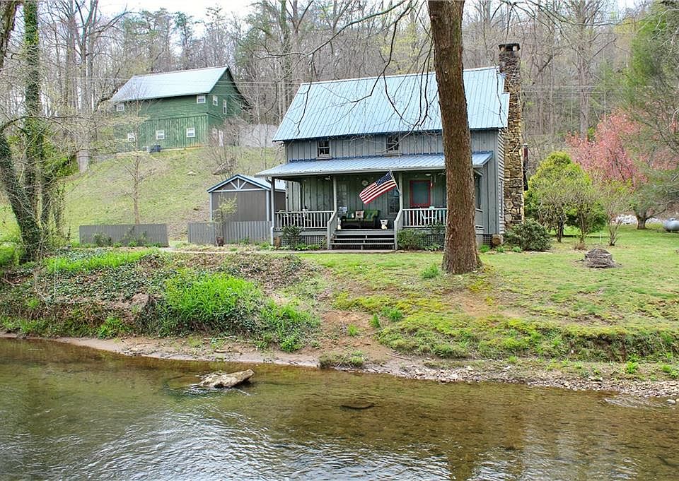 You can't get much closer to the river! Whether looking for a permanent residence or a second home to escape the hustle and bustle, you will love this beautiful, well constructed cabin. Featuring 3 bedrooms, 3 1/2 bathrooms, open living, kitchen, dining space, cozy fireplace with gas logs, beautiful stained glass windows, hardwood tile flooring, beautiful owners suite with huge bathroom on main floor. Relaxing porch overlooking the river, outbuilding and more. This home is conveniently located near Vogel State Park and Brasstown Bald. You will love it!