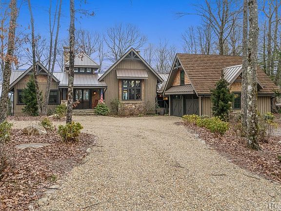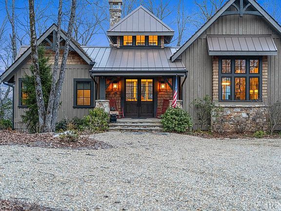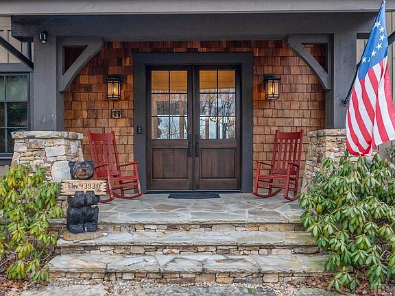 Create everlasting memories in this elegantly designed custom mountain chic home. At an elevation of over 4300 feet, this mountain retreat was designed by Jim Robinson to maximize glorious mountain views & light while maintaining the simplicity of one level living. Built with fine craftsmanship & detailing by Design South Builders, no stone was left unturned-from the millwork to the stone masonry to the dramatic & light-filled cupola foyer entryway to the mixed media roof of metal & synthetic shake shingles, every detail was tended to with perfection. The center of it all, a light-filled expansive living area with beamed cathedral ceilings & floor to ceiling stone fireplace leads to sets of double doors that open to cool mountain breezes & dramatic panoramic mountain views that will take your breath away. Sit under the stars on the covered deck or toast s'mores & relax next to the wood-burning stone fireplace on the fabulous screened porch. The beautifully designed kitchen is fit for foodies, with a hammered copper sink, plenty of counter space, KitchenAid & GE appliances & a wine fridge for your guests to enjoy while sitting along the spacious kitchen island while enjoying hors d'oeuvres or while enjoying a gourmet meal from the beautiful dining room table, that accommodates 10. Privacy is assured for all, with a split floorplan, with a large primary suite with mountain views, double walk-in closets & a lavish bath with a heated tile floor & beautifully tiled walk-in shower on one end & two guest rooms with ensuite baths & one with a built in office cubby on the other end. The mudroom, with an additional refrigerator & laundry, leads under a covered walkway to the double garage that features additional space above that could be completed as additional bedroom space or guest apartment. A dual-fuel system offers wonderful heat in the winter & a generator provides assurance of an operational home during inclement weather. Come see why you'll never want to leave!