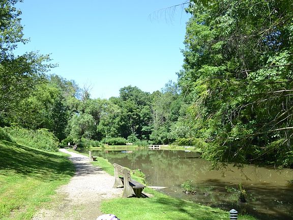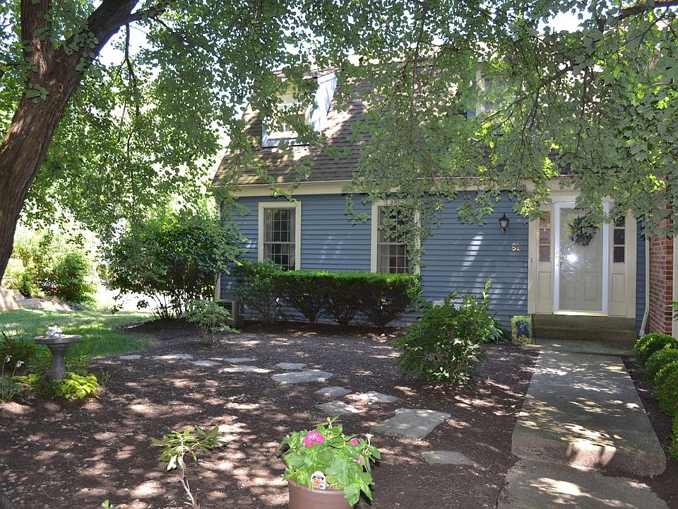Best lot in plan! New partially covered 28x10' deck. Newer garage door, opener, stove, dishwasher, microwave, hot water heater, light fixtures. Recent carpet. Natural slate floor. Gas fireplace. 2 large bedrooms. Master suite with walk in closet. Extra fridge/freezer in basement.