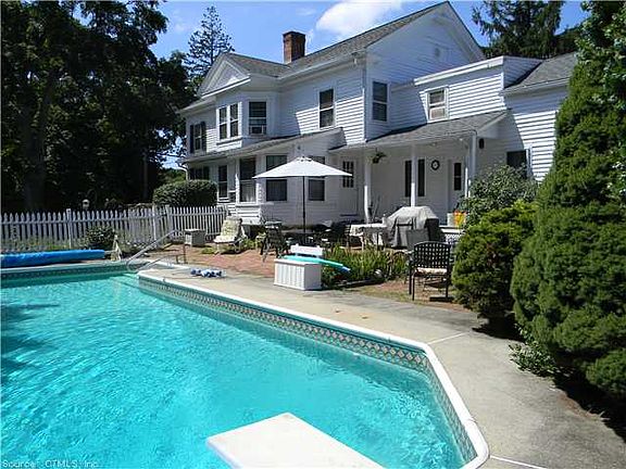 'MAPLEHURST" This stately Greek Revival home has a lovely hillside setting enhanced by stone walls, pillars and landscaped in ground pool. Gracious, light filled rooms focus on the center chimney. with fireplaces w/cooking crane and working beehive oven. Wood floors and much original detail will satisfy the antique lover and up-to-date mechanicals will please everyone. This home has expansion potential in the walk up attic and in the loft space over the attached garage. Located in the Guilford Lakes area there is easy access to the elementary school, the par three town golf course and Timberlands hiking trails. The town center is 5 minutes away and there is easy access to transportation. (turnpike, commuter bus, and Shoreline East rail services.