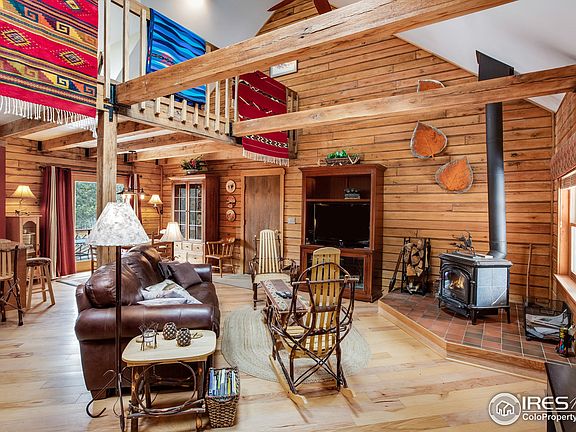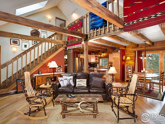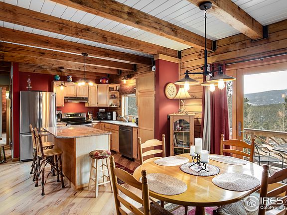 Gastineau 3BR/2BA log home that has been meticulously maintained,only a few lots from Nederland Elementary school,& minutes from downtown Nederland w/many dining options/music venues.Close to ice skating rink/tennis courts, Mud lake, hiking/biking trails,Caribou Room music venue, &RTD.15 min. to Eldora Ski Resort! Features: Remodeled Master bath,flex space loft area,fenced yard, some newer Marvin windows/sliding door, metal roof, granite countertops, newer SS appliances, driveway built with pavers, 2 car att. garage, & newer furnace/hot wtr. htr., all appliances incl.VIEWS of James Peak from this 1/2 acre lot.Warm wood interior finishes, and newer hickory floors installed on the diagonal.
