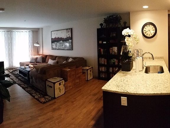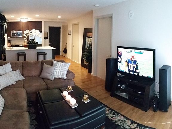 Do not miss out on this! Oversized 1 bed with fantastic layout -Island kitchen with dark stained espresso cabinetry, granite countertops and stainless steel appliances -Spacious and sleek modern bathroom with great storage -Gigantic walk-through closet with built-ins -High ceilings and floor to ceiling windows -Building features a 24 hr concierge, elevator, gym, sports court, multiple communal lounges, outdoor terrace and much more! Call/text/email Tommy today for a showing! Listings tend to have a short shelf life in this market, so please note that availability and pricing can change daily! List price reflects any/all current leasing incentives offered by landlord. Flexible move-in date