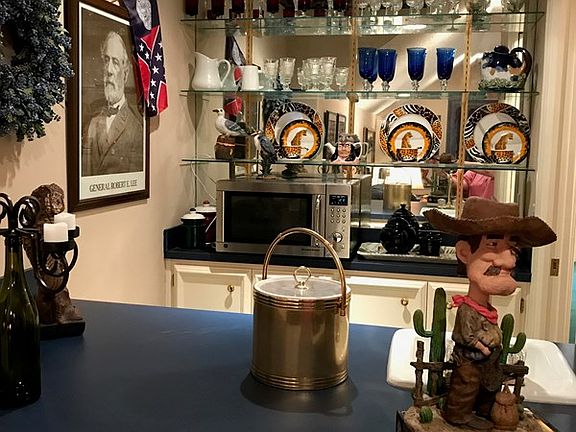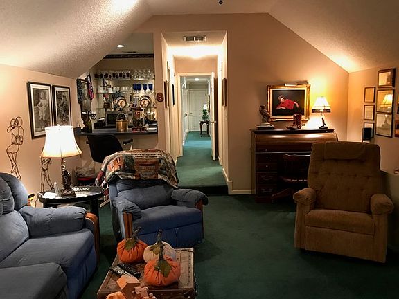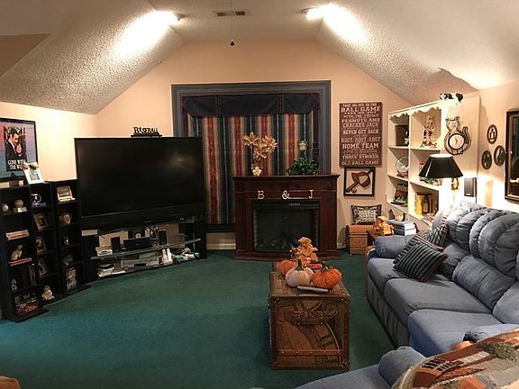 Also features a large kitchen with island and a great room with fireplace.The master bedroom also has a fireplace. Upstairs has 2 bedrooms, each connected to a bathroom. There is a Man Cave or media room with a wet bar perfect for movie night or the big game. The home sits on just over an acre and features a gazebo, water fountain. Covered back porch is very inviting and perfect for morning coffee or eating dinner.