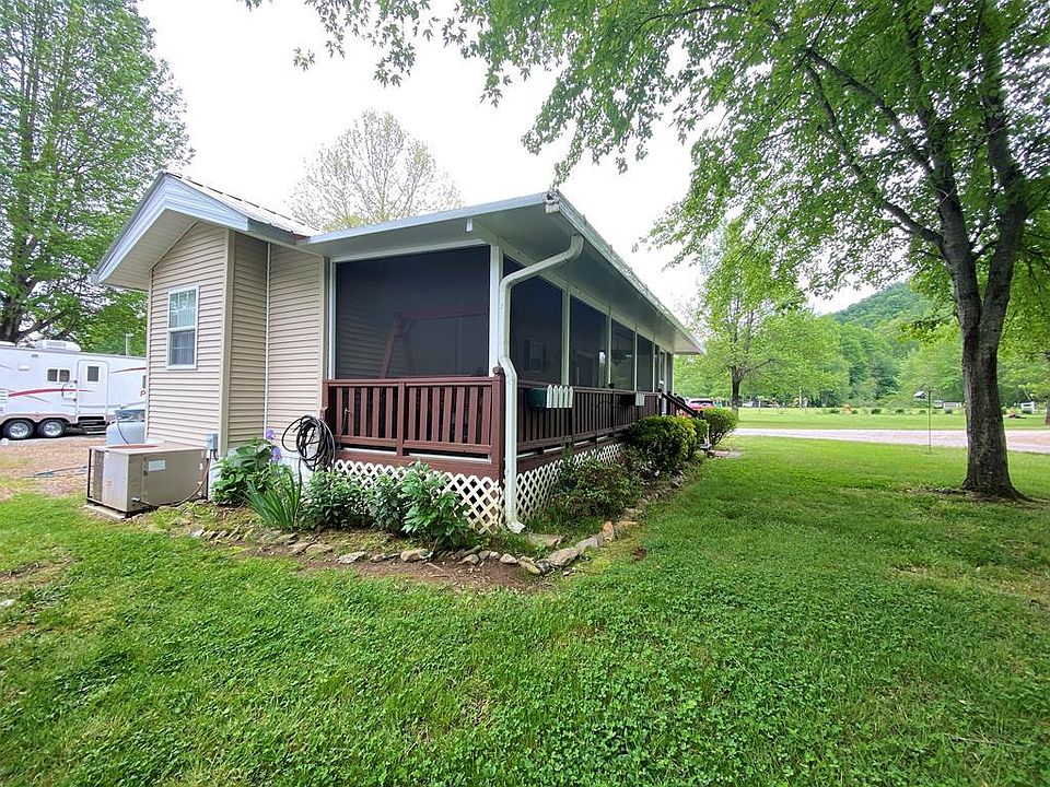 Well Kept, Park Model located in Cartoogechaye Campground on Rented Lot. Perfect Vacation Home for anyone looking to relax in Franklin during the best months of the year for a bargain in this current market. Home is sold furnished & is move-in ready! Home offers great location on the quiet side of town in Cartoogechaye right off HWY 64 for easy access. Home has perfect location in the campground off to the side away from most of the other spots, near a pond & overlooking the horse pasture. For being a Tiny Home, this model offers a very comfortable layout with a huge 250 sqft screened-in front porch- my fav feature! Home has been wonderfully maintained & cared for over the recent years & campground does the yard & road maintenance for you for ultimate convenience! This model features the upgraded "Energy Saver" Package from the manufacture with upgraded insulation throughout home to help save on Power Bill. Campground offers full-time staff ran by local Franklin family & bath/laundry house near home for guests! Campground is open from April 1st - November 1st & home can only be occupied during this time. SOLD FURNISHED.