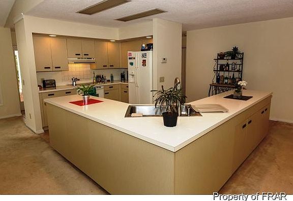 -A bright cheery and welcoming great room area consisting of the LR, DR & kitchen form the main focus of the living area. A double sided fireplace serves the living and family rooms. The kitchen is open and accessible with a corner sink allowing for open sight lines throughout the living area. The split bedroom plan provides plenty of privacy, and the large master bedroom suite contains a WIC &