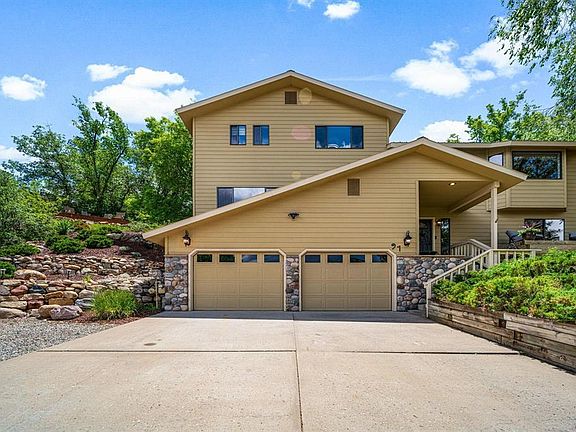 Welcome to 91 Oak Valley Drive in one of Durango, Colorado's most prestigious neighborhoods, Timberline View Estates—where peaceful, large parcels with sweeping Animas Valley views sit just one street from Durango city limits. Enjoy the serenity of county living just minutes from in-town amenities, with a lush green backyard on the edge of open space offering views of the red cliffs of the Animas Valley, Missionary Ridge, the La Platas, and Animas City Mountain. Step outside the double sliding kitchen doors to a generous backyard patio surrounded by terraced landscaping and shade trees. Wander up the private path from the primary suite to “The Point” deck—your perch for taking in 108-degree sunset views across the surrounding mountains. This outdoor sanctuary is green, quiet, and dotted with lupines and wild roses. Inside, the home shines with fresh paint, new luxury vinyl plank flooring, updated trim, stylish lighting, and thoughtful updates across four levels. The inviting entryway leads to two bedrooms, a full bath, and a large laundry room with utility sink. A newly installed atrium chandelier adds warmth and light to the foyer. Up one level, a remodeled great room with oversized windows and sweeping valley views offers flexible living: a bedroom with walk-in closet, full bath, and open living space perfect for guests, multigenerational living, or a quiet office. On the next level, the main living area unfolds beneath tongue-and-groove vaulted ceilings. A dramatic three-sided gas fireplace connects the living, kitchen, and dining areas, grounding the open-concept design and creating year-round comfort. The expansive kitchen features granite tile countertops, a large walk-in pantry, custom cabinetry, recessed and under-cabinet lighting, and lots of counter top space. Sliding glass doors and bay windows surround the dining area with light. Distinctive copper-hued metalwork frames the fireplace and accents the bar, adding a warm, artisan feel. Custom backsplashes complete the space—a curated blend of function and style. Upstairs, the private primary suite is a true retreat with vaulted ceilings, large walk-in closet, dual vanities, and a beautifully tiled walk-in shower. Glass doors open to a fenced redwood deck with retractable awning, ideal for pets and peaceful mornings. Also on this level is a fourth bedroom suite with panoramic views of the Animas Valley, full bath, ceiling fan, and mirrored closet—perfect for guests or anyone seeking solitude and scenery. Additional features include efficient hydroponic in-floor radiant heat powered by a garage-located boiler, ceiling fans and built-in shelving in all five bedrooms, updated vanities and toilets, new terraced landscaping, and an oversized two-car garage with room for storage, bikes, or a workshop. The driveway and adjacent parking area accommodate up to five more vehicles. Outside, private trails and quiet roads connect easily to the Horse Gulch Trail System, with seamless access to Durango Mesa Park and Carbon Junction. This home offers the best of both worlds—tranquility, space, and natural beauty just minutes from town.