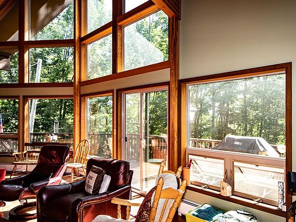 This wonderful on mountain Lindal Cedar home is located in one of Okemo's most central locations. Just minutes to the base lodge as well as minutes to the town of Ludlow, this well positioned home offers a spacious open floor plan perfect for all seasons. A glass façade fills the living space with natural light and leads out to a magnificent deck. The main level includes a mudroom with numerous built-ins, a custom designed kitchen with breakfast bar, a separate dining area, and a living room centered by a dry lay stone woodburning fireplace. Two bedrooms, one en suite, are conveniently located on the main level while the top floor bedroom, also en suite, offers a nice separation of space. A large family room with bath occupies the ground level and has walk out access to the side yard. An additional outbuilding offers storage space for a multitude of uses.