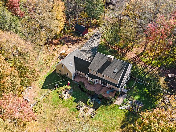 Do you dream of a simpler life - fresh air, wide open space, and the freedom to slow down? This charming New England colonial home is set on 2.5 private acres, and is tucked back from the road and bordered on three sides by non-buildable land, ensuring lasting peace and privacy. It's the perfect homestead for those who want to live sustainably - ideal for vegetable gardening, goats, chickens, or simply enjoying the quiet beauty of nature. Inside you'll find a spacious country kitchen - the heart of the home - seamlessly opening to the family room and centered around a stunning stone fireplace. Recently updated with all new appliances, including a propane gas range, and finished with beautiful granite countertops. The primary suite is a true retreat, featuring a luxurious walk-in shower, elegant marble double-sink vanity, and the comfort of heated floors. The basement has been thoughtfully designed with abundant storage shelves and a custom-built potting station with grow lights, perfect for garden lovers. The remodeled room above the garage provides flexible living space - ideal as a playroom, rec room, or home office. The updated half bath and laundry room adds charm with its warm rustic farmhouse style, blending functionality with character. Adventure is never far away, with nearby opportunities for fishing, biking, kayaking, and skiing. Whether you're seeking an outdoor lifestyle or a serene retreat, this home is ready to welcome you Deck to be stained prior to closing. Interior and exterior video surveillance.