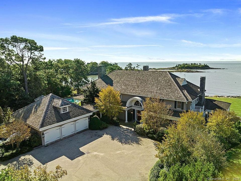 Rarely does a property of this stature become available. This unique property is serenely located on Long Island Sound overlooking the historic Thimble Islands. The home is located in the Old Quarry Association which is a private enclave of 23 homes situated in a unique and diverse ecosystem of salt marshes, woodlands and direct waterfront. 91 Old Quarry's 8000 square feet were constructed with exquisite attention to detail and craftsmanship. Entering the two story foyer, you look through to the living room to the expansive views of the water. The house is positioned to take full advantage of its natural setting with waterviews in the majority of the rooms. The scale and proportion of the rooms are perfect. The home lends itself to entertaining on a large scale yet the rooms have an intimacy and warmth. The kitchen is everyone's dream with all high end appliances, a butler's pantry, plenty of storage, a large breakfast and a cozy gas fireplace, one of 8 in this home. The first floor has a grand formal dining room with hidden built-in storage, a formal living room and a private library/office which has extensive built-ins and fireplace. The first floor also has a bedroom complete with en-suite bath, a garden room and a 300 bottle wine closet. The primary bedroom is breathtaking with vaulted ceilings, a balcony, a commanding fireplace and two oversized dressing rooms with every amenity possible. Additionally, there are two other bedrooms with ensuite baths and a room that could be used as another bedroom or exercise room. The exterior of the home is as beautiful as the inside with professionally landscaped grounds and multiple outdoor areas to enjoy. Whether you are looking for a quick dip in the heated Gunite pool or perhaps you'd like to go for a spin around the Thimble Islands from your deep water dock or just relax and enjoy the view on the blue stone patio that runs across the front of the house; this home has it all. Imagine calling 91 Old Quarry your home.
