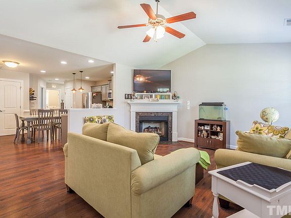Beautiful, rocking chair front porch Ranch on over an acre of land! Well maintained, open floor plan - great for entertaining. Kitchen offers SS appliances, recessed lighting, pantry, ample cabinetry, & screened porch access - Perfect for watching the sunset! Large Master bedroom features vaulted ceiling, ceiling fan, WIC, & privacy bath. Master bath includes his/her vanity, separate shower, & garden tub. 2 large additional bedrooms share full hall bath. Half an acre fenced in area. Home is convenient to I40 & I95. Welcome Home!