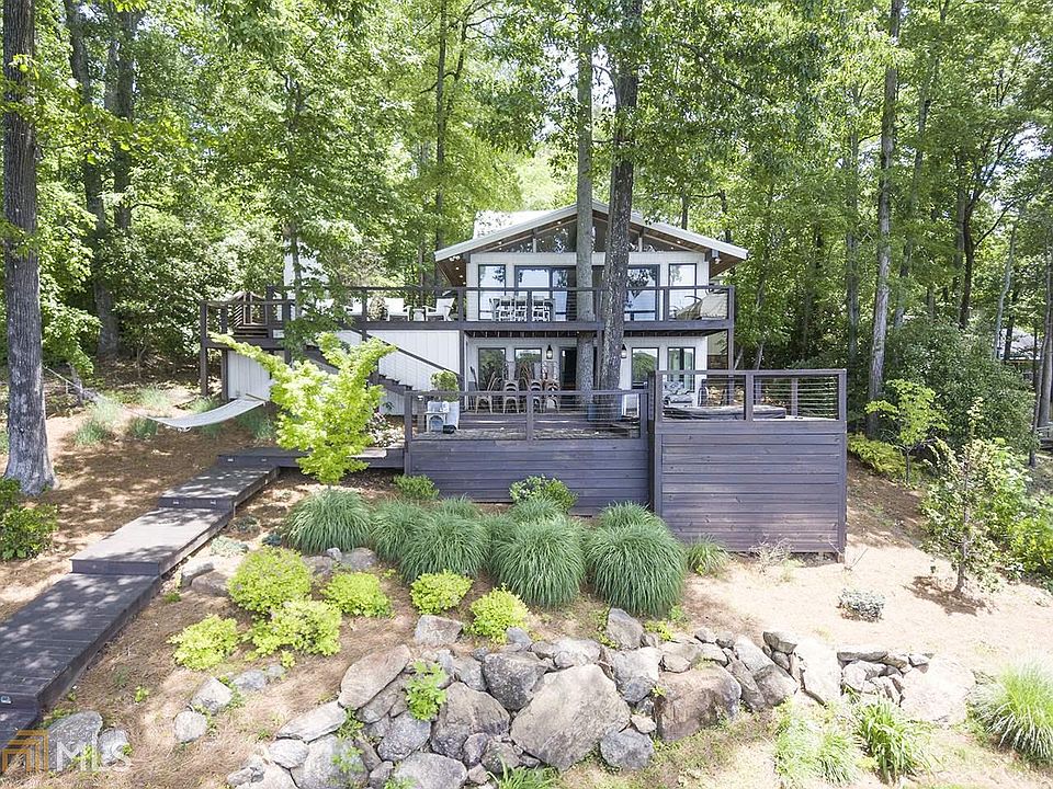 LUXURY LAKE LIVING AT ITS FINEST! This Jackson Lake home was totally renovated and updated in 2014. MAIN HOUSE has two living areas separated by a double sided fireplace. The Sunroom aka Lake Room has floor to ceiling windows for a non obstructed view of the lake along with walk out to upper deck. Gourmet kitchen sure to delight the chef in your family! Stainless steel appliances, tons of cabinets for storage, quartz countertops and a large island. The master suite and bath are on the main floor with two guest rooms and bath upstairs. The full finished basement is an entertainment space all its own! Full bath, another double sided fireplace and windows and sliding doors out to the second deck and a hottub and more unobstructed lake views! THE GUEST SUITE has and additional 500sq ft suite with its own living area, full bath and walk in closet located above the detached 3 car garage with 1/2 bath. The details of the cedar and pine floors and beams will have you feeling at home in your lake retreat by no time! BIG WATER access with 12ft water depth at boathouse. A TRUE SOUTHERN LIVING DESIGN!