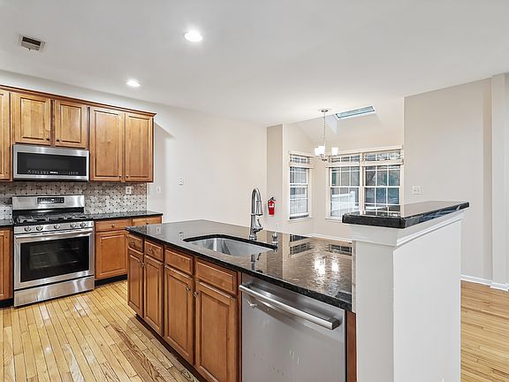 Soak up the sun in this EAST facing Danbury Model. As you walk in, you will find Living Room to the Right with garage entrance & powder room to the left. This home has Open Floor plan with high ceilings and Hardwood Floor throughout the First Floor. Eat in Kitchen with a Skylight above for that afternoon/evening sun that leads to a private fenced patio perfect for Grilling. Kitchen has plenty of cabinets, SS appliances, Granite counter tops, Breakfast bar & Pantry large enough to stock up essentials. Spacious Family room with Gas Fireplace. A formal Dining offers room for entertaining, New Roof replaced by the HOA few years back. The second level hosts the Primary Bedroom with vaulted ceiling, walk in closet, recessed lighting, luxurious bath with soaking tub, shower stall & double vanity with New Mirrors and light fixtures. Two additional bedrooms with full bath with new mirror and light fixtures as well with hallway Laundry Room. Another level up and there is a Loft perfect for Home Office/Study or additional bedroom. The finished basement adds additional living space with engineered floor, Recessed lights and special lighting for Home Theatre System that the homeowners are leaving behind for the next Tenant's use. Amenities include outdoor pool, tennis court, walking/jogging trails, clubhouse and playground. Proximity to major highways. NJ Top Rated School System. Owner pays for Maintenance of Common area and trash disposal. Tenants responsible for Electricity, Gas, Water, Sewer & Snow Removal.