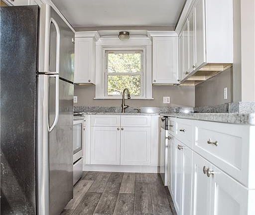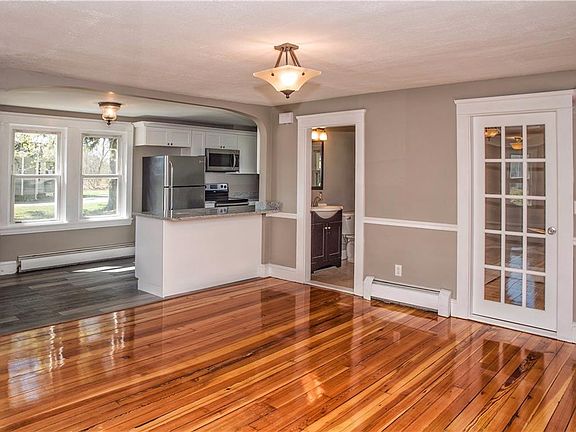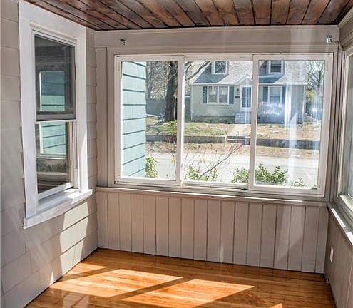 Stunning remodel in this first floor, 2 bedroom unit has gleaming hardwoods, new kitchen with cabinets, granite countertop and stainless steel appliances. Open layout gives this unit a great flow, the 3 season sun-filled porch is extra living area and there is a small room which would make a great office. Off street parking, large picturesque yard overlooks pond! Available for immediate occupancy. Garage usage is an extra $100/ month. Covid-19 safety pre-cautions are required to view property.