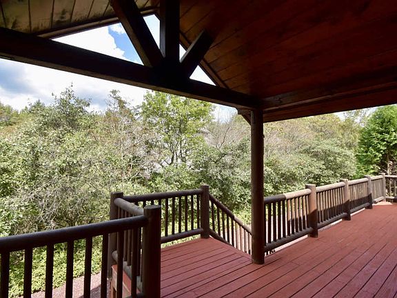 Stunning prow front log home with three levels of high quality finishes and a lot of that sought-after mountain vibe. Perfect escape for ski or lake season and tons of character make it very rentable. Master bedroom on the upper level has a luxurious bathroom, it's own private deck, and a loft overlooking the great room. Windowed front showcases the seasons from the living and dining areas and kitchen. Gorgeous stone fireplace and gleaming wood floors make this area POP! Fully finished above grade basement with wet bar and plenty of space to hang out and have fun. There is even a hot tub out on the deck. Rinnai endless hot water system and a new water filtration system, too. Located just minutes from the NE Extension and Pocono attractions. 1.3 miles to community lake/pool/tennis club.