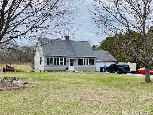 LOCATION, LOCATION! 1700sq ft 4 BEDROOM CAPE w/ ATTACHED 2 car garage on 2 ACRES!! LARGE living room/dining room w/ slider leading out to HUGE backyard w/ playscape and FENCED area for dogs. NEWER STAINLESS appliances in (dated) kitchen w/ LOTS of cabinets. 1/2 bath w/ laundry area and mudroom need finishing. 1st floor bedroom. CENTRAL AIR (newer condenser). HARDWOOD stairs lead to HUGE MASTERBEDROOM w/ NEW SLIDER (needs trim and balcony needs work). 2 additional bedrooms another full bathroom needs updating. LARGE WALKOUT basement. 2007 ROOF & GUTTERS, 2010 GARAGE DOORS, NEWER 200 amp panel, NEWER FURNACE, some new windows and doors. ALOT of POTENTIAL if you can do the finishing touches, paint, trim and sheetrock! SOLD AS IS-NO GOV. FINANCING. IF your handy this property is for you.