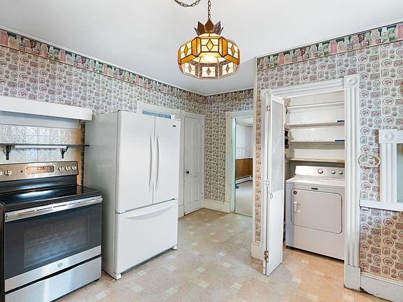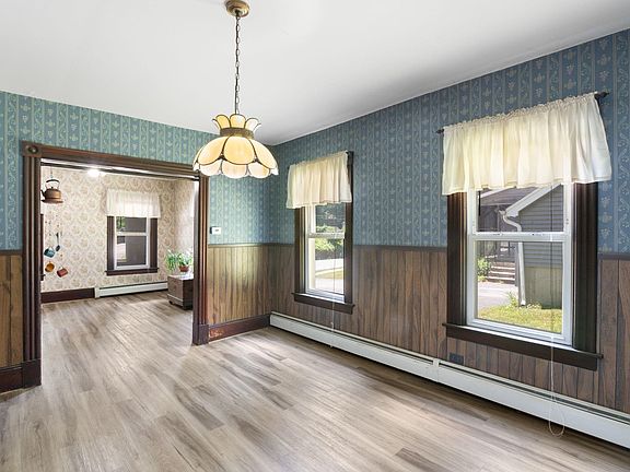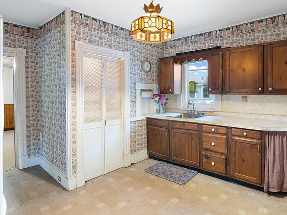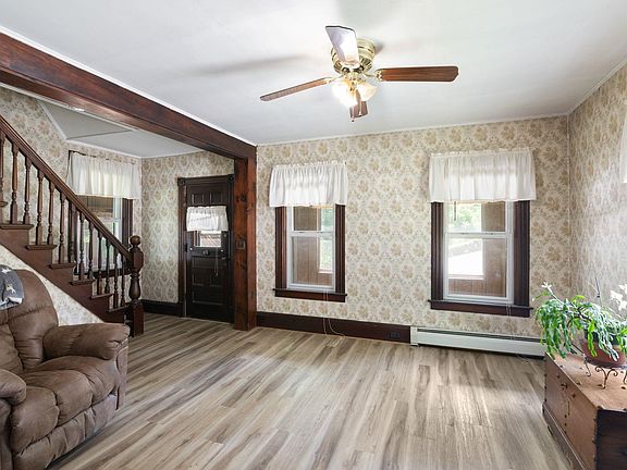 $20,000 PRICE REDUCTION! Come visit this sweet cape with huge potential, built in 1880 with many charming period features. This home offers a spacious kitchen with convenient direct access to a laundry/pantry closet. The dining/living area has an inviting openness with newer laminate floors. Large bonus room on the first floor adjacent to a full bath and screened-in seasonal porch. The second floor has 3 good-sized bedrooms and a half bath. There is also a lovely screened-in porch that wraps around the home and a 16x20 shed. This is an affordable home that has great potential to improve on, space for outdoor gardens, and the convenience of being close to schools, hospital and shopping.