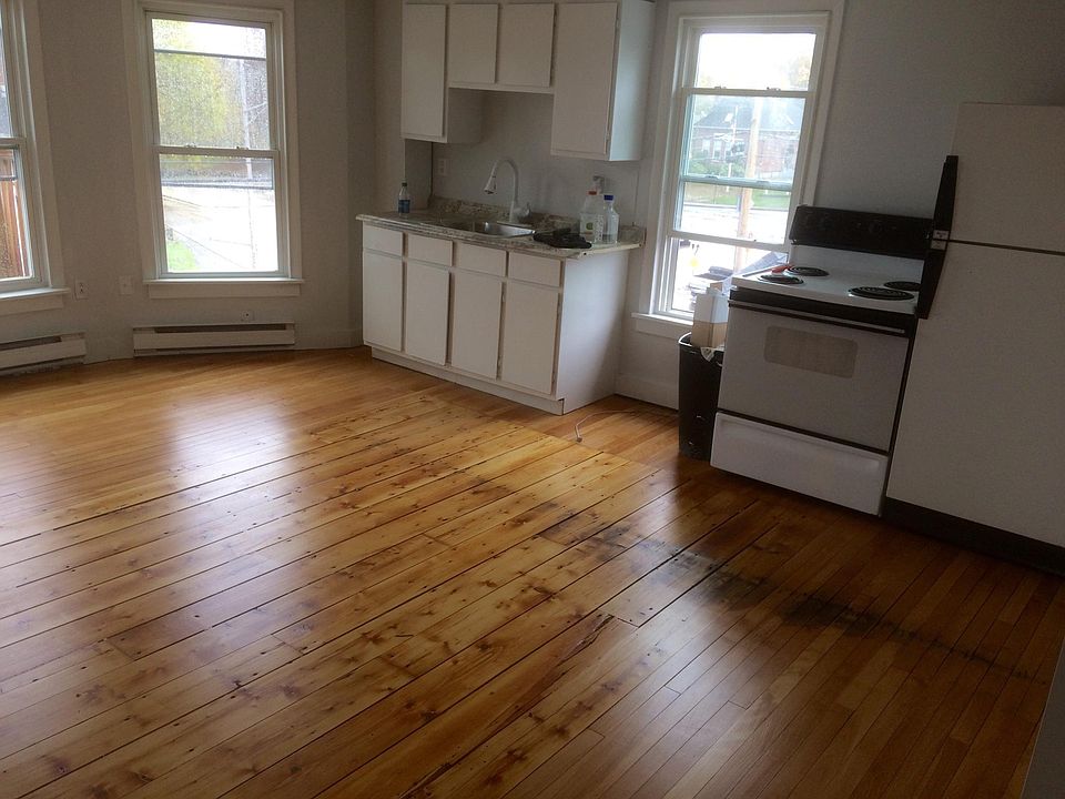 Nice sunny third floor apartment All hardwood floors Walking distance to downtown Quiet respectful building Off street parking No dogs 1 cat with documentation ok. No smoking Landlord pays water sewer Tenant pays heat electric Heat is electric baseboard Laundromat right across the parking lot