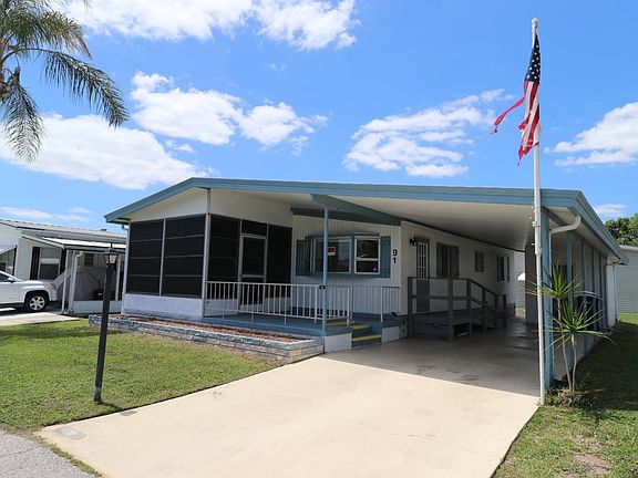 Come check out this affordable home located in Colony Cove, the #1 rated 55+ community in the state of Florida. This 2 bedroom, 2 bathroom comes with an enclosed sunroom and with an additional open porch. The house includes a bright kitchen with a beautiful assortment of windows centered in front of the sink. The carport entrance includes a wheelchair-accessible ramp. The community Colony Cove, is an award-winning waterfront & golf cart community with 6 Pools (water aerobics), 6 clubhouses (free rental for private parties), 75 slip marina (kayaking & boat storage) with open access to the Gulf of Mexico, coffee bar, outdoor pavilion & fireplace, fishing pier, 2 fitness centers (exercise groups), dog park (pet-friendly community up to 2 -75 lb dogs), woodworkers shop, arts & crafts, libraries, billiards, pickleball, tennis, shuffleboard, horseshoes, 24/7 courtesy patrol, fire & rescue services. A full calendar of things to do with golf cart parades, entertainment, dinners, dances, cards & games. Live where everyone else goes on vacation! Lot rent- $ 905.49 and includes water, lawn care, sewer and trash, and all the amenities of the park. Colony Cove is a 55+ community with 5 clubhouses, 5 pools, a fitness room, library, game room, billiard room, pavilion, and shuffleboard courts. Pet-friendly offering a large dog park with views of the Manatee River. In addition, this park also has a private boat dock with fishing along with a marina with Gulf access. Close to restaurants and shopping areas making it convenient for seasonal and full-time residents. Please do not miss this opportunity, this could be your dream home!All listing information is deemed reliable but not guaranteed and should be independently verified through personal inspection by appropriate professionals. Integrity Mobile Home Sales cannot guarantee or warrant the accuracy of this information, measurements or condition of any property. Measurements are approximate. Lot rent is subject to change.
