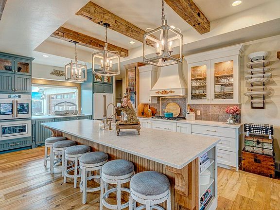This exquisite home radiates ''custom''. An open-concept layout with reclaimed wood accent beams captivates upon entry. Unobstructed views of mountains and the Powder Horn Golf Course grace nearly every window. This home blends modern farmhouse style with a hint of French country. The kitchen features high end ''Cafe'' appliances, seating for six at the island, and an oversized pantry. Quartz countertops, unique cabinetry, and creative lighting add a striking flair. Luxurious master suite and guest quarters offer plenty of privacy. Storage is abundant & an extra deep 3-car garage boasts an added work area. The fenced backyard has a park-like feel with a waterfall and private covered patio with gas fireplace. Enjoy stunning views and sunsets from the front patio in your piece of paradise. HOME FEATURES