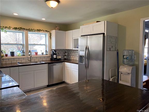 Accepted offer 12/1 with multiple backups. UPDATED RANCH VALLEY CENTRAL SCHOOLS with Montgomery Elementary. This charming ranch is located near the end of a cul-de-sac with 1,464 square feet, three bedrooms, and two full bathrooms and hardwood floors throughout! The newly renovated, spacious, kitchen offers custom wood counters, white shaker cabinets, stainless steel appliances, double sink, tiled flooring, and a breakfast peninsula with seating. The expansive dining room is open to the living room which is perfect for entertaining. Private master bedroom with an updated en-suite bathroom. Two nicely sized additional guest bedrooms. Den/office. Full bathroom with dual vanity. The back deck is perfect for entertaining and overlooks the backyard. Town water and sewer. Full basement. Garbage included in taxes. Just minutes to commuter highways such as I-84 and the NYS Thruway, the Village of Montgomery, shops, restaurants, parks, and groceries. Do not miss out on this opportunity!
