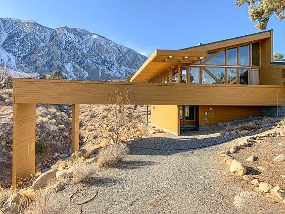 This 3 bedroom, 3.5 bath 2,800 sq ft home was designed by an apprentice of Frank Lloyd Wright to be uniquely suited to the landscape. With a sweeping driveway, cantilevered upper walkway & deck, this home offers breathtaking mountain views inside and out! Inside features an open floor plan of kitchen, dining, and living rooms surrounded by windows that let the outside in. Abundant storage with custom oak cabinets throughout the house. Kitchen has built in refrigerator and an island with additional sink. Large laundry room with sink and plenty of storage. Bath tubs and showers have tiled walls & glass enclosures. Outdoors enjoy the 2 acres of equestrian zoned surroundings and a seasonal creek. Bordered by US Forest Service land, you can start your hike from your own back door!