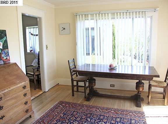 91 Ramona Avenue is an elegant Craftsman home sited on a verdant hillside in Piedmont. The yard is graced by flowering vines curling around the wrought iron fence. Roses brighten the way to the sheltered front porch with its romanatic arched windows. Tucked in the front yard is a charming flagstone patio surrounded by greenery. It’s just right for sitting in the sun admiring the view of this great neighborhood in Piedmont. This home is convenient too! Despite the small town coziness of the immediate street, just blocks away are all the wonderful shops and restaurants that line Piedmont Avenue. Inside, period touches and large windows set off the spacious, bright and sunny living and dining areas framing views of the tree-lined streets below. The large, eat-in kitchen has plenty of room for family and guests to keep you company while you whip up a casual meal or an elegant dinner to serve in the formal dining room. Up a brief flight of stairs you’ll find the private rooms: three bedrooms and one bath. The master has sliding glass doors that open to a small patio perfect for relaxing after an active day. A short walk leads to the convenient level-in entry to the garage As for the neighborhood, its unique placement and easy freeway access makes the fabulous restaurants and entertainments that abound in the East Bay and San Francisco easily within your reach. • 3 spacious bedrooms with large closets • 1 bath • Fenced back and front yard • 4429 sq. ft. lot and 1426 sq. ft. of living area as per public records • Top-notch schools & friendly neighbors