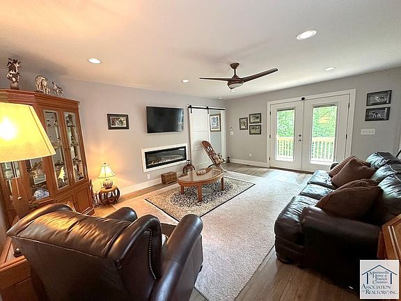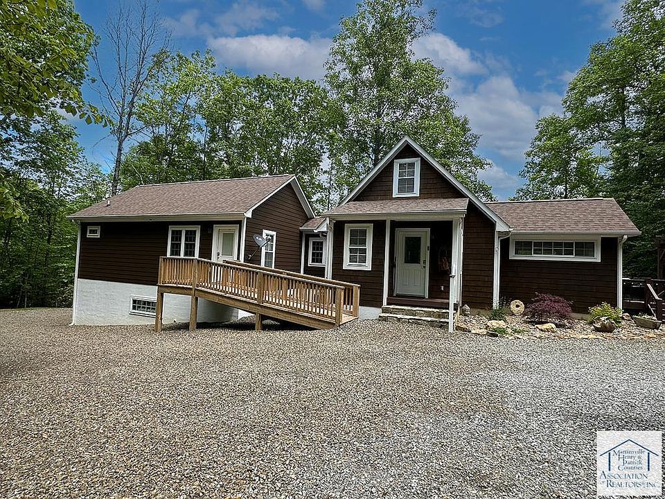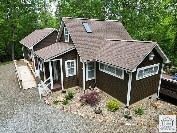 Welcome to your mountain paradise! This beautifully updated two-bedroom, two-bath home is ideal for a full-time residence or a weekend getaway. The open-concept great room boasts a gas-log fireplace and cathedral ceiling, creating a welcoming atmosphere. Adjacent to the great room are a cozy bedroom and a full bath, with a loft area above for additional sleeping space. The glass-enclosed observation deck offers breathtaking views of the pond and forest and leads to a private deck with a pergola-covered saltwater hot tub. A breezeway connects to a second lounge area featuring an electric fireplace and a small rear deck, as well as another spacious bedroom and full bath. The home includes a convenient mudroom with laundry hookups and is fully handicap accessible. Set on over 14 acres, the property offers nature trails and a dock by the pond. Additional features include a full-size garage/workshop with a separate laundry hookup, dual HVAC systems, dual hot water heaters, and a Generac whole-house generator for added convenience and comfort. There is a property perimeter hard-wired CCTV system. Pre-qualified buyers only; afternoon appointments are preferred, please. Don't miss this exceptional mountain retreat!