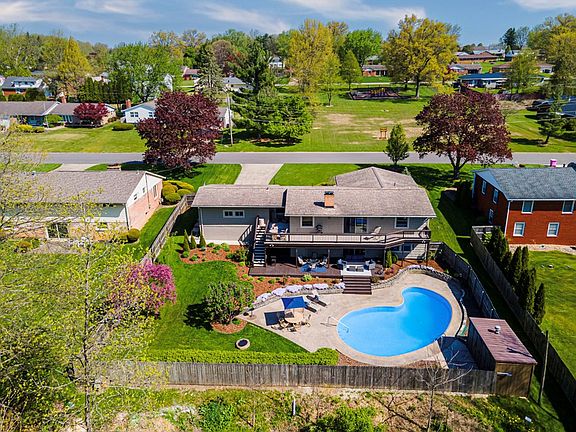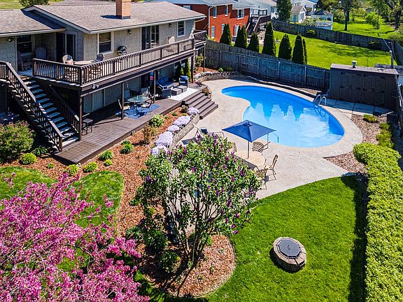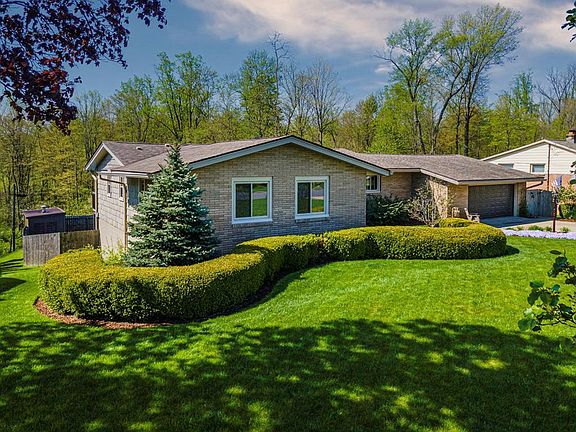 Stunning brick & shake ranch in the desirable Ranchwood neighborhood! This home has it all... cathedral ceilings, multiple living spaces, a private wooded backyard and an inground swimming pool! Perfect floor plan from the double front doors into the great room leading to the dining and fully applianced kitchen. Main floor deck over looking the entire fenced backyard and woods beyond. Main floor owner's suite with updated bathroom. Lower level with two additional bedrooms (3 main floor, 2 lower), a full bath and laundry. Family room in the lower level with built in shelving and a corner fireplace. The backyard oasis is truly the place you'll never want to leave! Inground swimming pool surrounded by privacy, tons of deck space and a six foot privacy fence. Pool storage house, beautiful flower gardens and wooded backdrop. Too many updates and amenities to list so request additional information from your Realtor. Showings begin 5/10/24 @ 9 am.